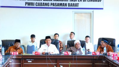 Pasaman Barat, Wahanainvestigasi.com Wakil Bupati Pasaman Barat (Pasbar) Risnawanto menghadiri sekaligus membuka Sosialisasi Pengenalan Produk, Program dan Layanan Bank Mandiri Taspen di Lingkup Persatuan Wredatama Republik Indonesia (PWRI) Cabang Pasbar, Rabu (15/2) di Auditorium Kantor Bupati setempat.