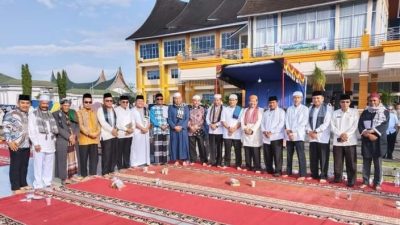 Pasaman Barat, Wahanainvestigasi.com Dalam rangka menyambut bulan suci Ramadhan 1444 H / 2023 M, Pemerintah Kabupaten Pasaman Barat (Pasbar) menggelar Tabligh Akbar, di Halaman Kantor Bupati setempat, Jumat (10/3/2023). Sebelumnya kegiatan diawali dengan shalat subuh berjamaah di Masjid Agung Baitul Ilmi Simpang Empat, Pasaman Baru, Kecamatan Pasaman. Tabligh Akbar yang mendatangkan penceramah dari Kota Medan Sumatera Utara, Ustadz Hasbi Al Mawardi, MA itu dihadiri Bupati dan Wakil Bupati Pasbar, Kapolres, Ketua DPRD, Kajari, Perwakilan Dandim, Sekda Pasbar, sebagai ketua panitia, Staf Ahli, Asisten, Kepala OPD, Sekretaris, Kabag, Kabid, Kasi, Camat, Wali Nagari, Jorong dan stakeholder terkait serta seluruh ASN di lingkup Pemkab Pasbar.Bupati Hamsuardi pada kesempatan itu mengucapkan terima kasih kepada seluruh pejabat dan ASN lingkup pemerintah daerah Pasaman Barat itu. Meskipun bertempat tinggal jauh dari lingkungan kantor, namun semangat untuk menjalin silaturahmi tidak berkurang. “Pagi yang cerah ini atas nama Pemda Pasbar kita ucapkan terima kasih kepada bapak ibu yang telah hadir pada kesempatan ini. Informasi yang kita terima ada yang rumahnya jauh seperti dari Kinali, bangun jam 03.30 sampai disini jam 04.45 dan mengikuti subuh berjamaah. Artinya kita semangat dalam silaturahmi,” ucap Bupati Hamsuardi. Sesuai visi misi Bupati dan Wakil Bupati Pasbar lanjutnya, berbagai upaya dilakukan untuk mendapatkan keridhoan dari Allah SWT serta meningkatkan keimanan dan ketaqwaan.Saat ini sudah memasuki bulan Syaban, dan tak berapa lama lagi bulan suci Ramadhan. Ia mendo’akan, agar semua yang hadir pada kesempatan baik itu untuk dapat bersama-sama menjalankan ibadah pada bulan suci Ramadhan 1444 H/ 2023 M.