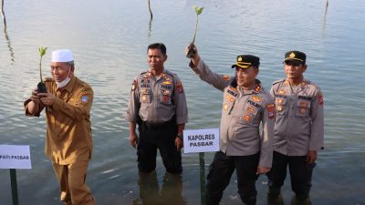 Pasaman Barat, WahanaInvestigasi.com Kapolres Pasaman Barat, AKBP Agung Basuki ikut menyukseskan penanaman pohon mangrove di Pantai Indah Sasak Maligi, Kecamatan Sasak Ranah Pasisia bersama Dandim 0305/Pasaman yang merupakan penanaman secara serentak di semua wilayah pesisir pantai di Indonesia sebagai antisipasi abrasi pantai, sore (15/05/2023).