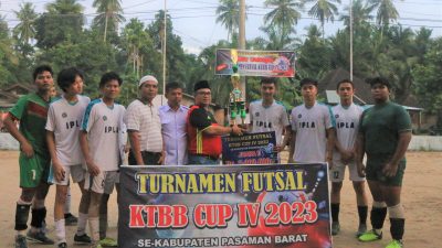 Pasaman Barat, WahanaInvestigasi.com– Turnamen Futsal Karang Taruna Bedeng Bersaudara (KTBB) CUP IV Tahun 2023, Rabu (5/7) berakhir dengan kemenangan dari MP FC Kinali Kecamatan Kinali.