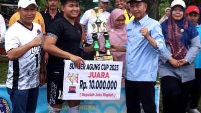 Pasaman Barat, WahanaInvestigasi.com Wakil Bupati Pasaman Barat (Pasbar) Risnawanto resmi tutup Open Turnamen Taruna FC Cup 2023, Minggu (22/10) di Lapangan Sepak Bola Nagari Tandikek Kejorongan Sumber Agung Kecamatan Kinali Kabupaten Pasaman Barat. Pertandingan berhasil dimenangkan Tim Julio Cell sebagai juara I dan Tim Bhaskoro FC sebagai juara dua.