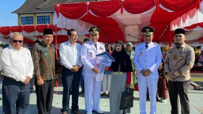 Pasaman Barat, WahanaInvestigasi.com Pemerintah Kabupaten Pasaman Barat (Pasbar) menyerahkan kunci rumah secara simbolis atas rehab rumah tidak layak huni, pada Kamis (2/5) usai upacara peringatan Hardiknas dan Otonomi Daerah ke-XXVIII di halaman kantor bupati setempat.