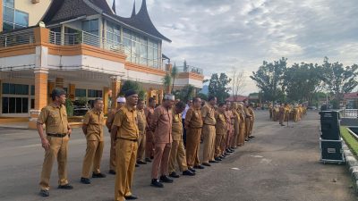 Pasaman Barat, WahanaInvestigasi.com Pemerintah Kabupaten (Pemkab) Pasaman Barat (Pasbar) kembali menggelar Apel Gabungan yang dilaksanakan setiap minggu pertama di awal bulan, pada Senin (3/2). Apel yang dipimpin Wakil Bupati Risnawanto itu membahas sejumlah hal, di antaranya optimalisasi kinerja pegawai di lingkup Pemkab Pasbar, efisiensi anggaran, perekrutan PPPK, dan lain sebagainya.