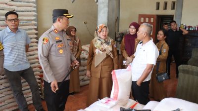 “Kami bersama Instansi terkait melakukan pengecekan langsung di grosir beras untuk memastikan ketersediaan stok pangan dan alhamdulillah stok beras aman,” kata AKBP Agung.