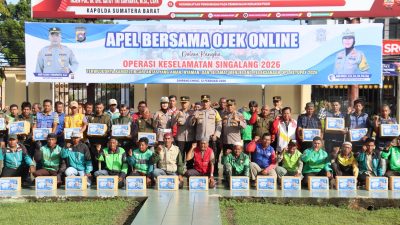 Kapolres Pasaman Barat AKBP Agung Tribawanto yang membacakan amanat Kapolda Sumbar mengatakan, kegiatan apel bersama ojek online seiring dengan pelaksanaan Operasi Keselamatan Singgalang 2026.