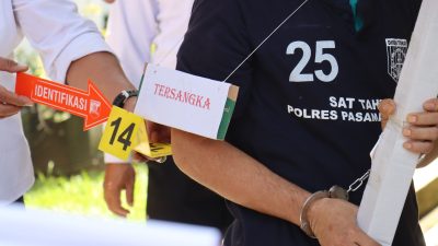 Rekonstruksi yang digelar di Mapolres Pasaman Barat pada Senin (13/4/2026) menghadirkan tersangka dan para saksi secara langsung, sementara peran korban digantikan oleh pemeran pengganti.